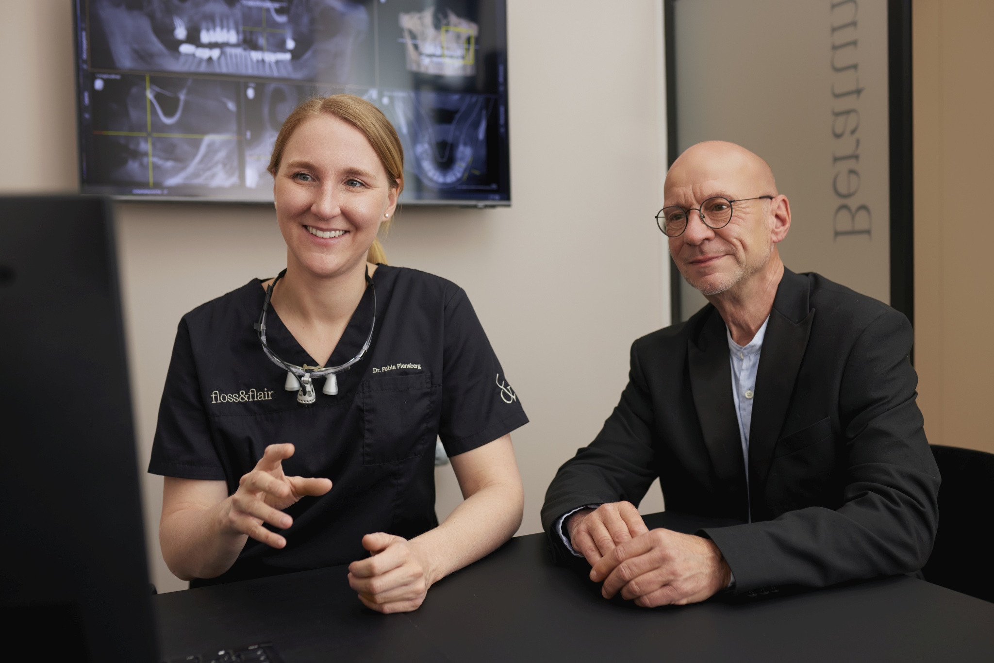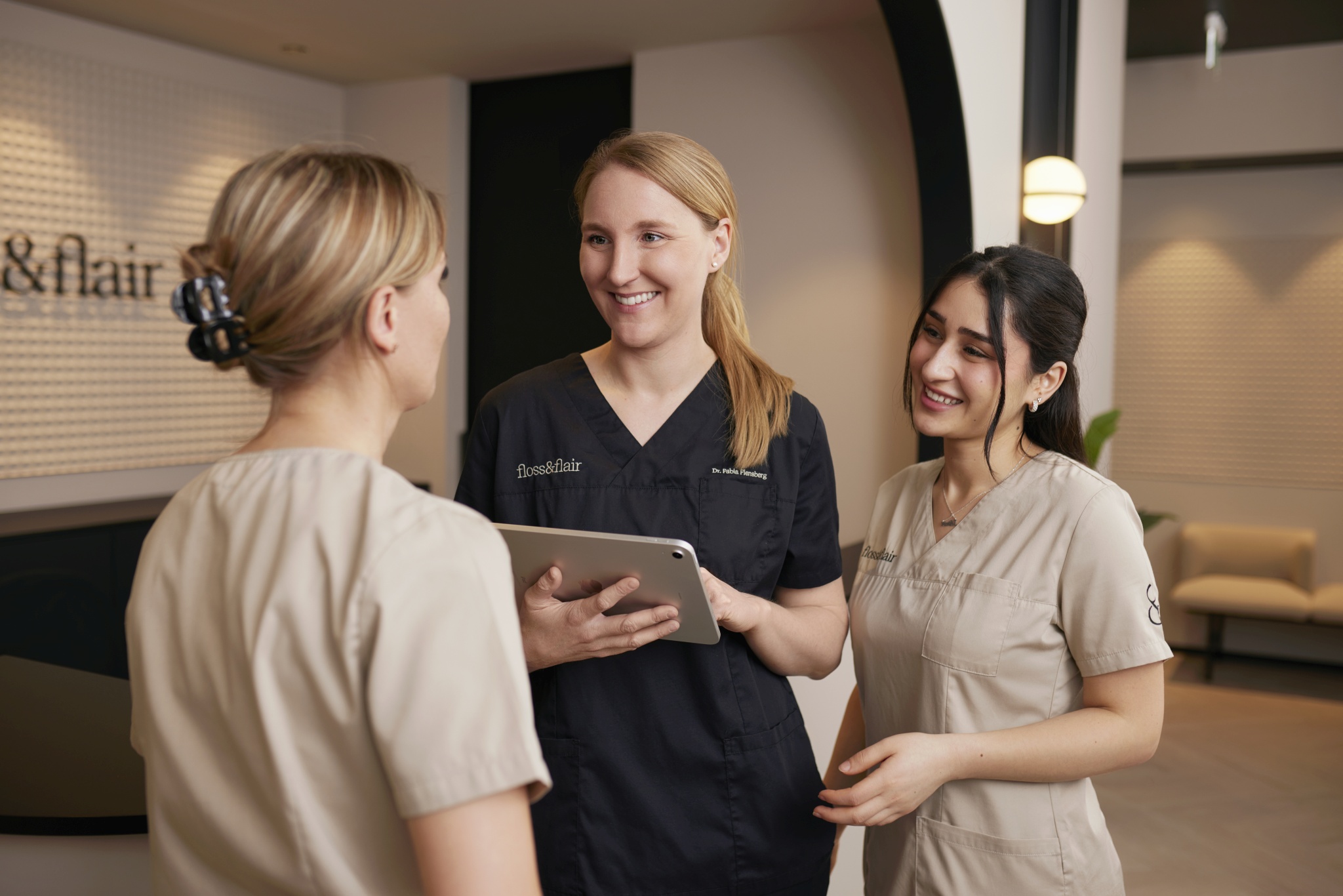 Bei floss&flair trifft zahnmedizinische Tradition auf Innovation: In einer komplett digital ausgestatteten Praxis nutzen wir die modernsten Technologien, um Ihre Zahngesundheit zu bewahren, zu stärken und wiederherzustellen. Mit umfassender Zahnheilkunde sind wir an Ihrer Seite mit einer persönlichen Betreuung, die weit über das Übliche hinausgeht – und mit präziser Diagnostik, die wir als DVT-Zentrum auch Kolleginnen und Kollegen zur Verfügung stellen.
