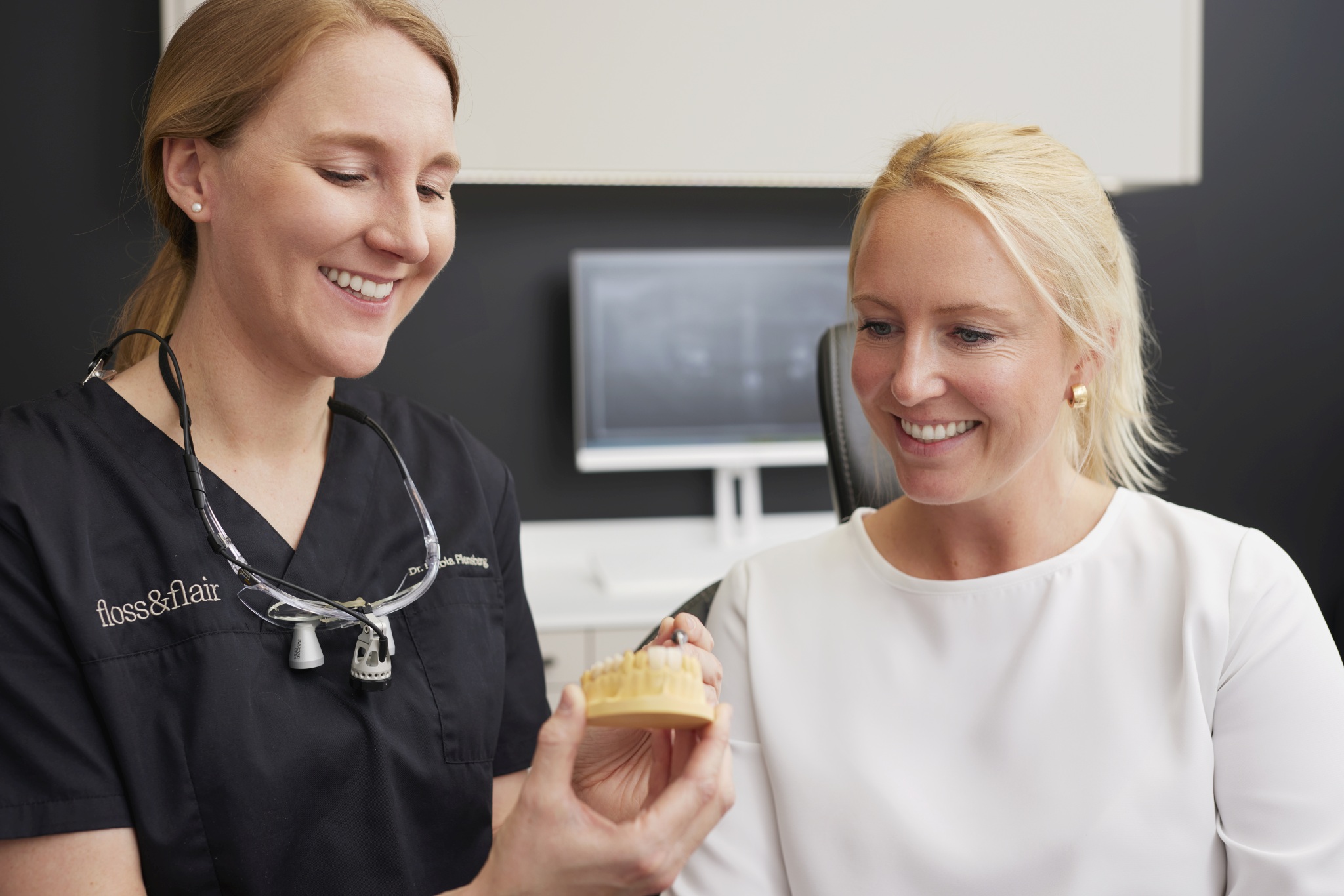 Ob Kronen, Brücken oder Prothesen – bei floss&flair verwenden wir biokompatible, langlebige Materialien, die sich optimal in Ihr Gebiss einfügen. Moderner vollkeramischer Zahnersatz ermöglicht eine Versorgung, die sich optisch kaum von den natürlichen Zähnen unterscheidet. In Kombination mit Implantaten können wir auch größere Lücken festsitzend und dauerhaft schließen. Ihre Zahnärztin in Velbert, Dr. Fabia Flensberg, nimmt sich Zeit für eine umfangreiche Befundung und Beratung, um den für Sie optimalen Behandlungsplan mit Zahnersatz zu entwickeln. Ziel der Behandlung mit Zahnersatz ist es, Ihnen maßgeschneiderte Lösungen zu bieten, mit denen Sie sich langfristig wohlfühlen. Nach digitaler Abdrucknahme lassen wir Ihre Prothetik individuell in unserem Partnerlabor anfertigen und setzen diese daraufhin in unserer Praxis ein.